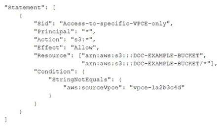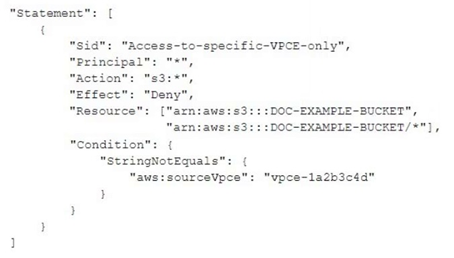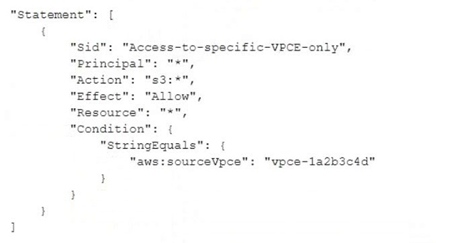 Limit all actions in the S3 bucket policies by using the aws:SourceVpc condition key with the value of the allowed VPC ID.