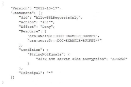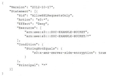 Use an AWS Key Management Service (AWS KMS) customer managed key. Encrypt the data at rest.